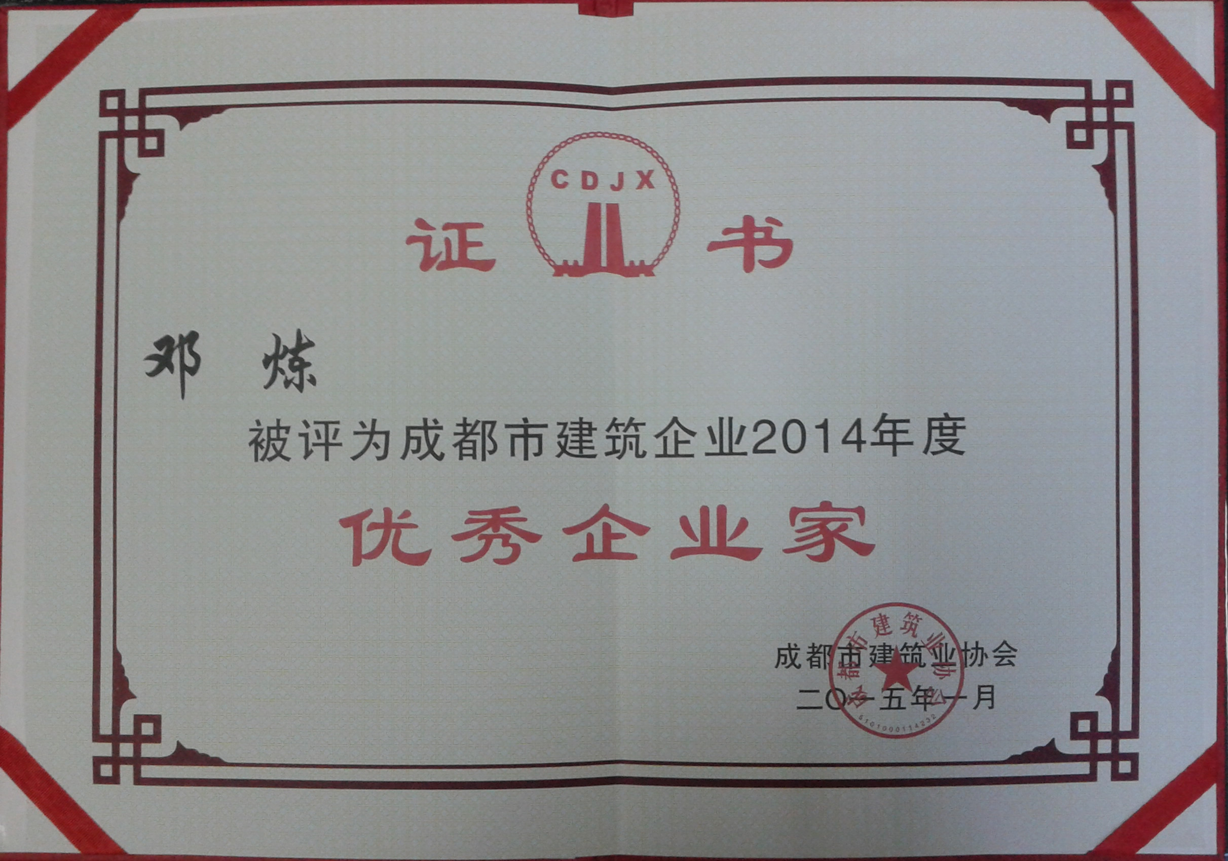 成都金陽建筑有限公司組建于1986年,經過近三十年的不斷發展壯大,為地方經濟建筑和社會事業做出了巨大貢獻,現已成為實力雄厚、管理規范、技術過硬、產品優良的施工企業,公司先后獲得各種榮譽60余項。2015年1月,公司總經理鄧煉同志再次被成都市建筑業協會評為“優秀企業家”,公司也同時再次被評為“先進企業”。(圖為榮譽證書和獎牌)