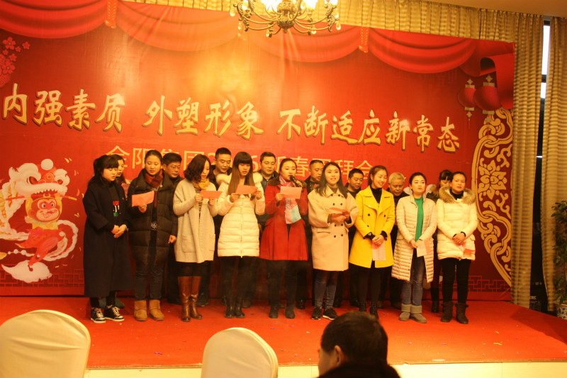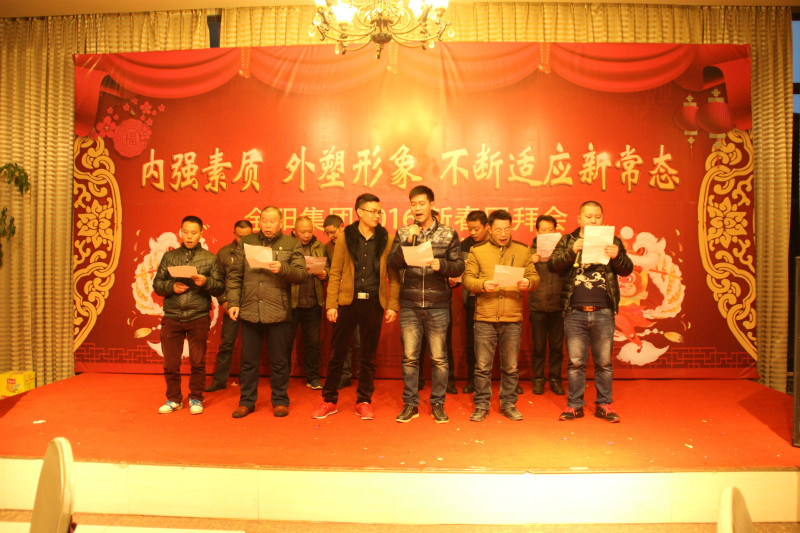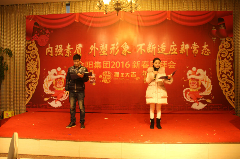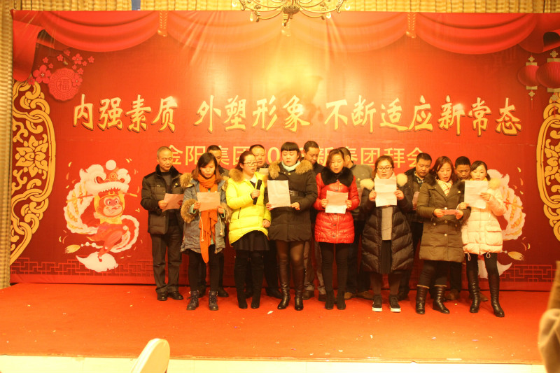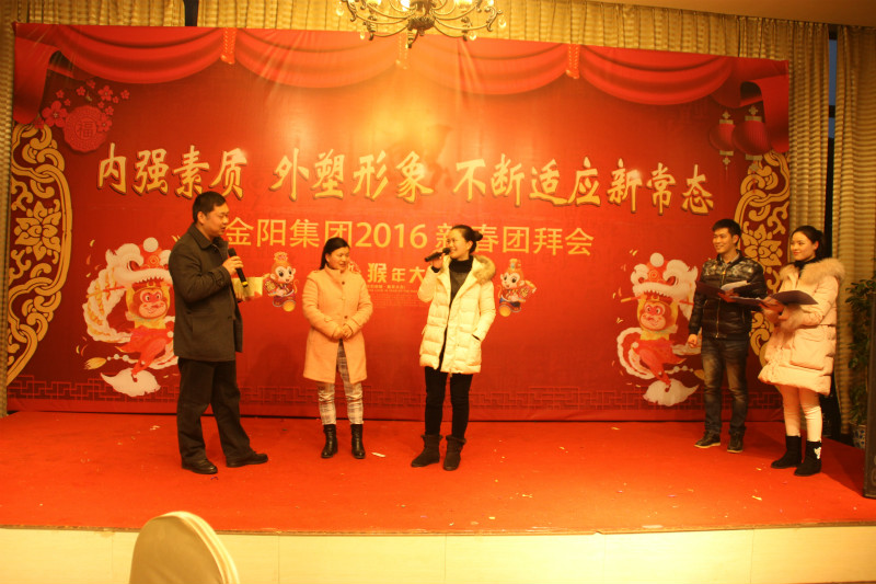 2015年,金陽集團適應經濟新常態、探索發展新途徑,全體金陽人在董事長、總經理的領導下,轉變觀念、深化改革、不斷學習、銳意進取,各方面都取得了較好的成績。成功伴著艱辛,喜悅伴著汗水,忙忙碌碌的每一天中,公司增添了魅力,員工豐富了人生。在冬日暖陽的2月3日,公司在金荷山莊舉辦了“內強素質、外塑形象、不斷適應新常態——金陽集團2016年新春團拜會”,集團各部門、各子公司全體員工歡聚一堂,載歌載舞,共迎猴年的到來,團拜會特別邀請了在金陽工作已退休的老同志一道與大家共度歡樂時光。