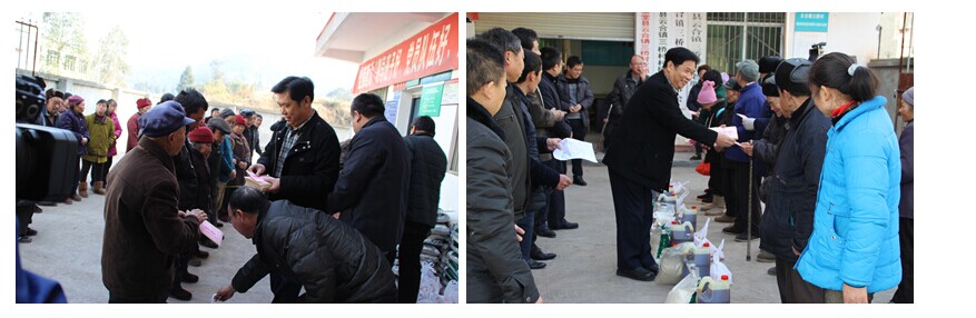為資助邊遠山區貧困家庭度過一個溫暖的春節,2014年1月13日上午,金堂縣工商聯名譽主席、金陽集團董事長鄧詩維先生再次與市、縣工商聯領導一行驅車近100公里,到金堂縣最偏遠的云合鎮三橋村對50余戶貧困家庭進行了春節慰問,為他們送去了慰問金、菜油、鮮肉、東北大米等物資,表達了金陽集團的一份愛心。(圖為慰問現象部分照片)