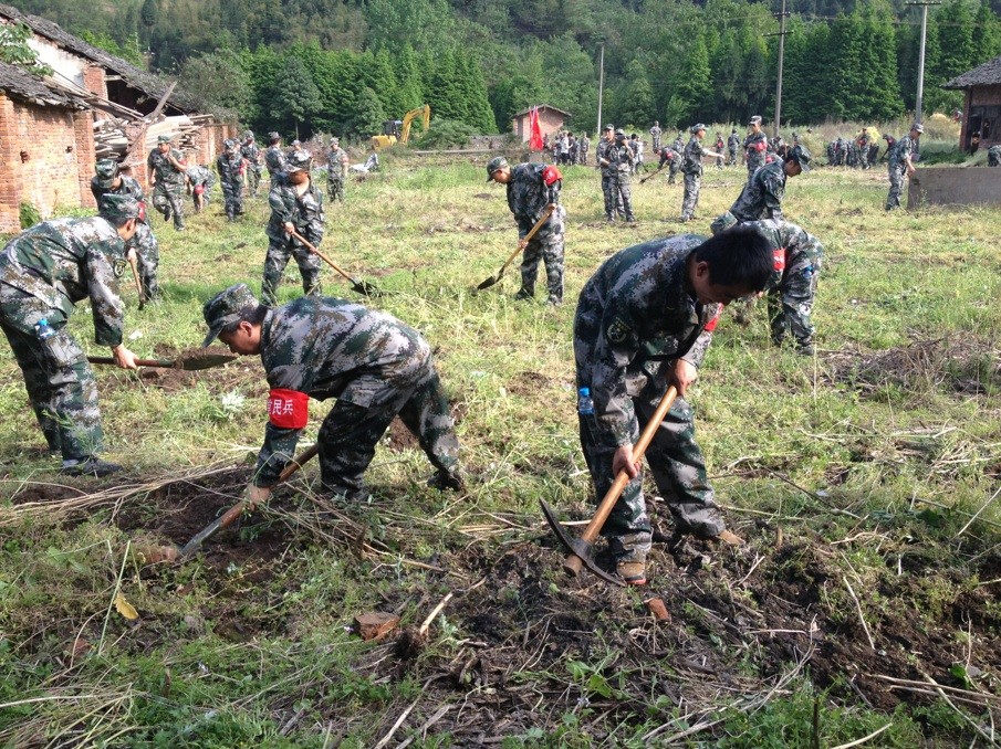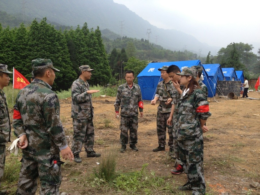 災難就是命令、時間就是生命,在災難發生后的第一時間,成都金陽集團董事長鄧詩維、總經理鄧煉、武裝部長鄧勇立即召集公司中高層管理干部召開緊急會議,研究抗震自救措施,安排人員對公司辦公樓、在建工程項目、物業管理小區的各種設施設備進行全面安全檢查,發現有安全隱患立即采取措施。與此同時,在接到縣武裝部抗震救災通知后,集團公司總經理鄧煉、金陽集團武裝部長鄧勇立即作出重要指示,要求公司全體員工立即進入應急狀態,集結好人員、準備好物資,以最快的速度、最精的人員,全力支援抗震救災工作。上午11:00時,公司組織的16名民兵全部到集結完畢,前往縣武裝部待命,11:40時,顧不上吃午飯的隊員們,在縣武裝部部長李春華的帶領下奔赴地震災區——邛崍市高何鎮靖口村。