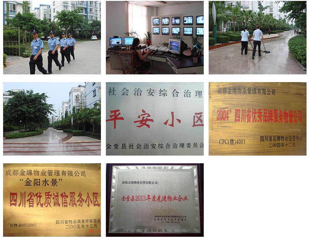 成都金綿物業管理有限公司組建于2001年9月,是物業管理三級資質企業,成都市物業管理協會會員單位?,F設辦公室、客服中心(維修組、綠化組、保潔組)、秩序維護部、財務科等部門,物業服務員工120余人。公司自組建以來,一直以“誠信為本、業主至上”的服務理念對社區進行管理和提供服務,先后管理“金陽萬福商城”、“金陽花園”、“金陽水景”“金陽麗景”“金陽美景”等物業小區。所管理的小區環境和服務質量受到小區業主的一致好評。公司被評為“四川省優秀品牌服務物管公司”, 所管理的小區先后被評為“平安小區”、“四川省優質誠信服務小區”、成都市“園林式居住小區”、成都市“三星級院落”等,成都市“五星級住宅區”, 2011年所管理的項目成功申報為“成都市優秀物業管理企業”,2012年、2013年連續兩年被金堂縣房管局、綜治辦被評為“物業管理先進單位”。